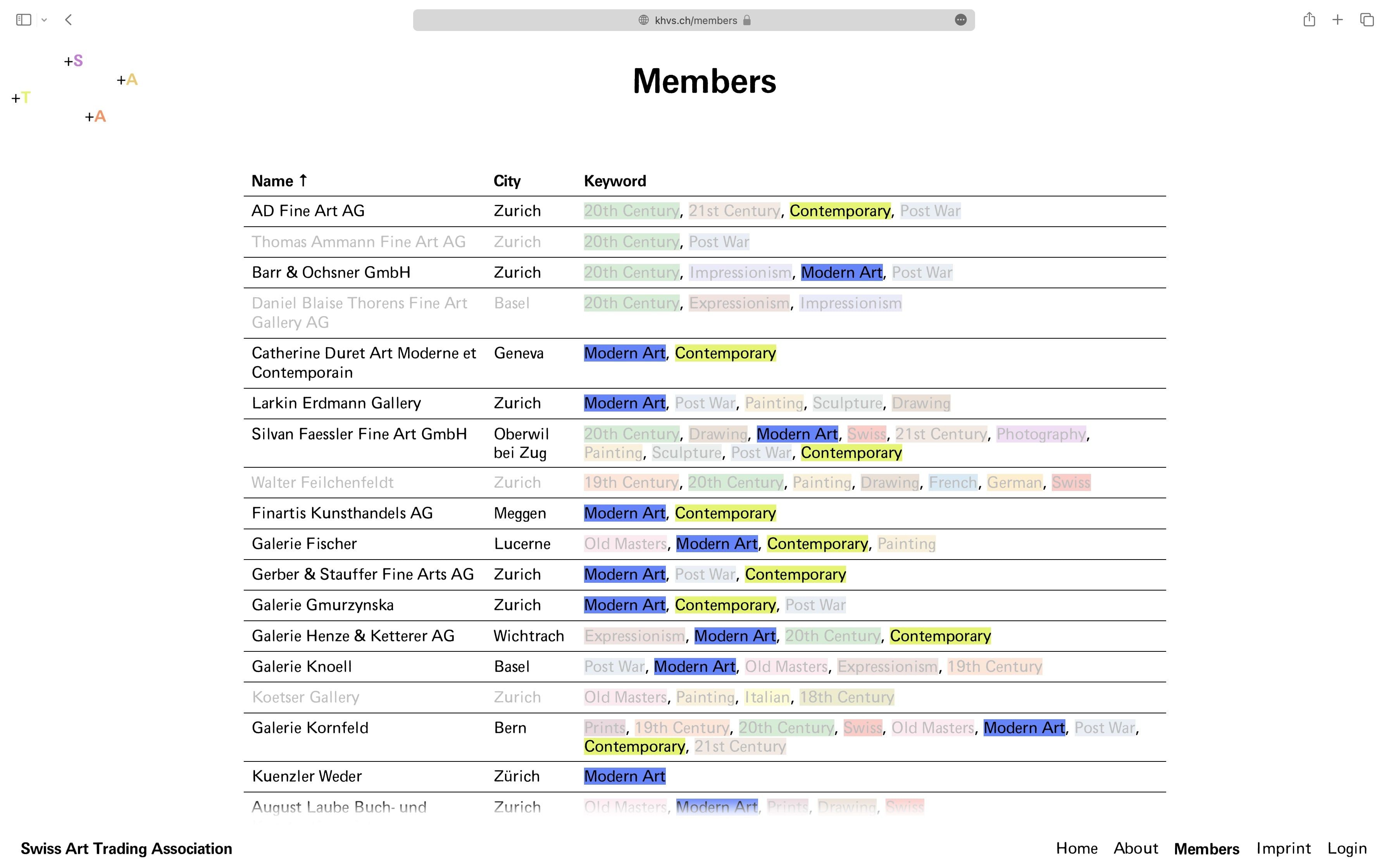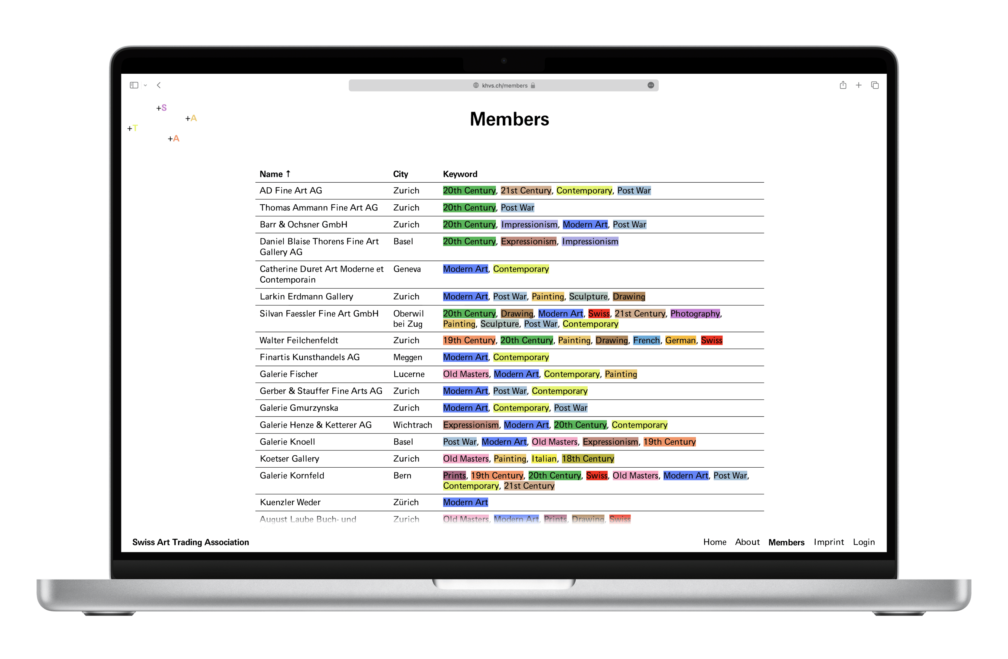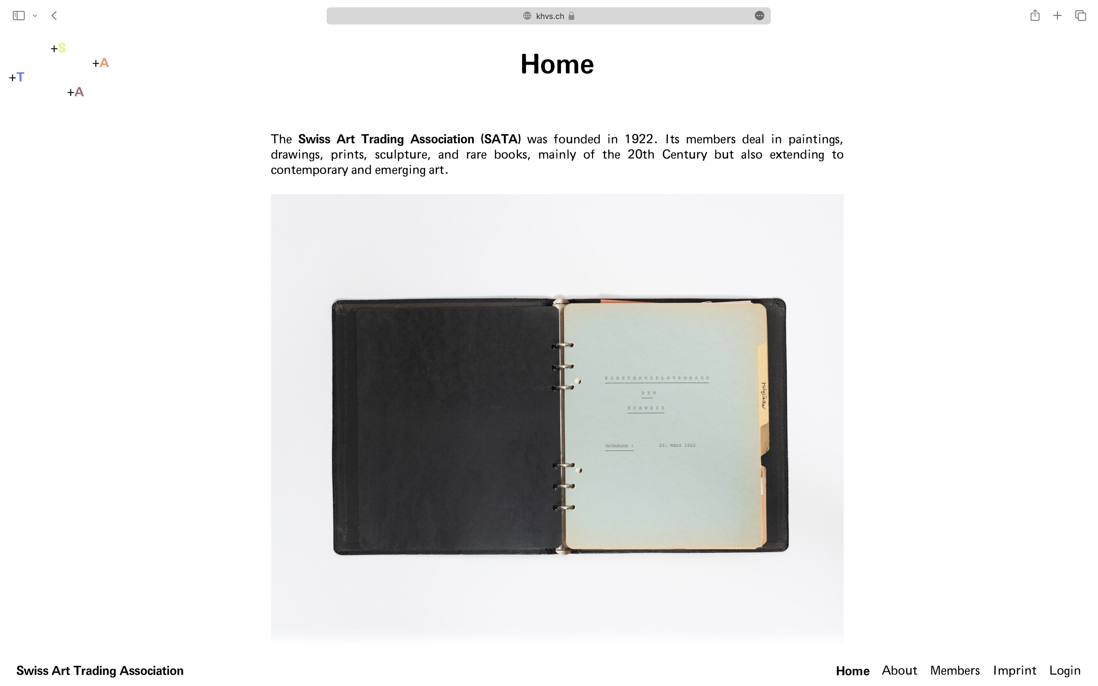 Hannah Tjaden and I designed the identity and website for the Swiss Art Trading Association. As an a collective body of living and practicing art dealers, the association facilitates the movement of art in Switzerland.