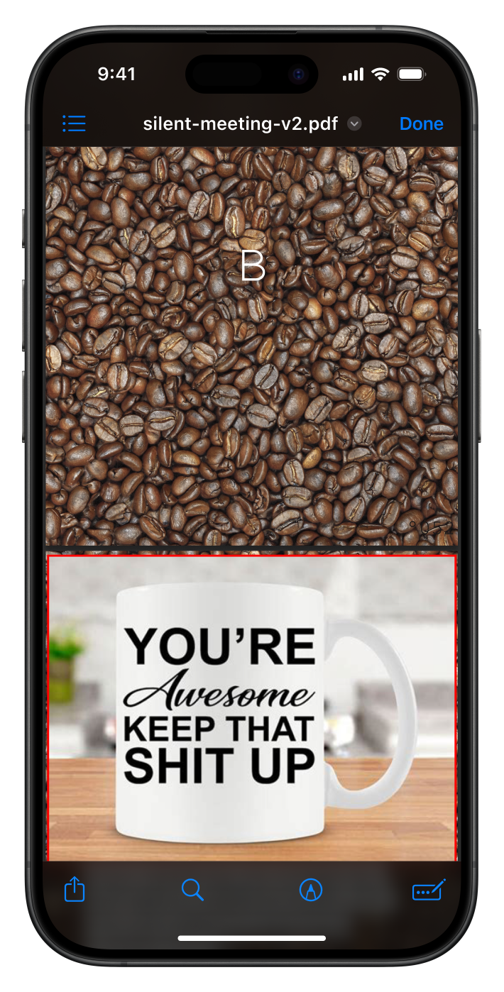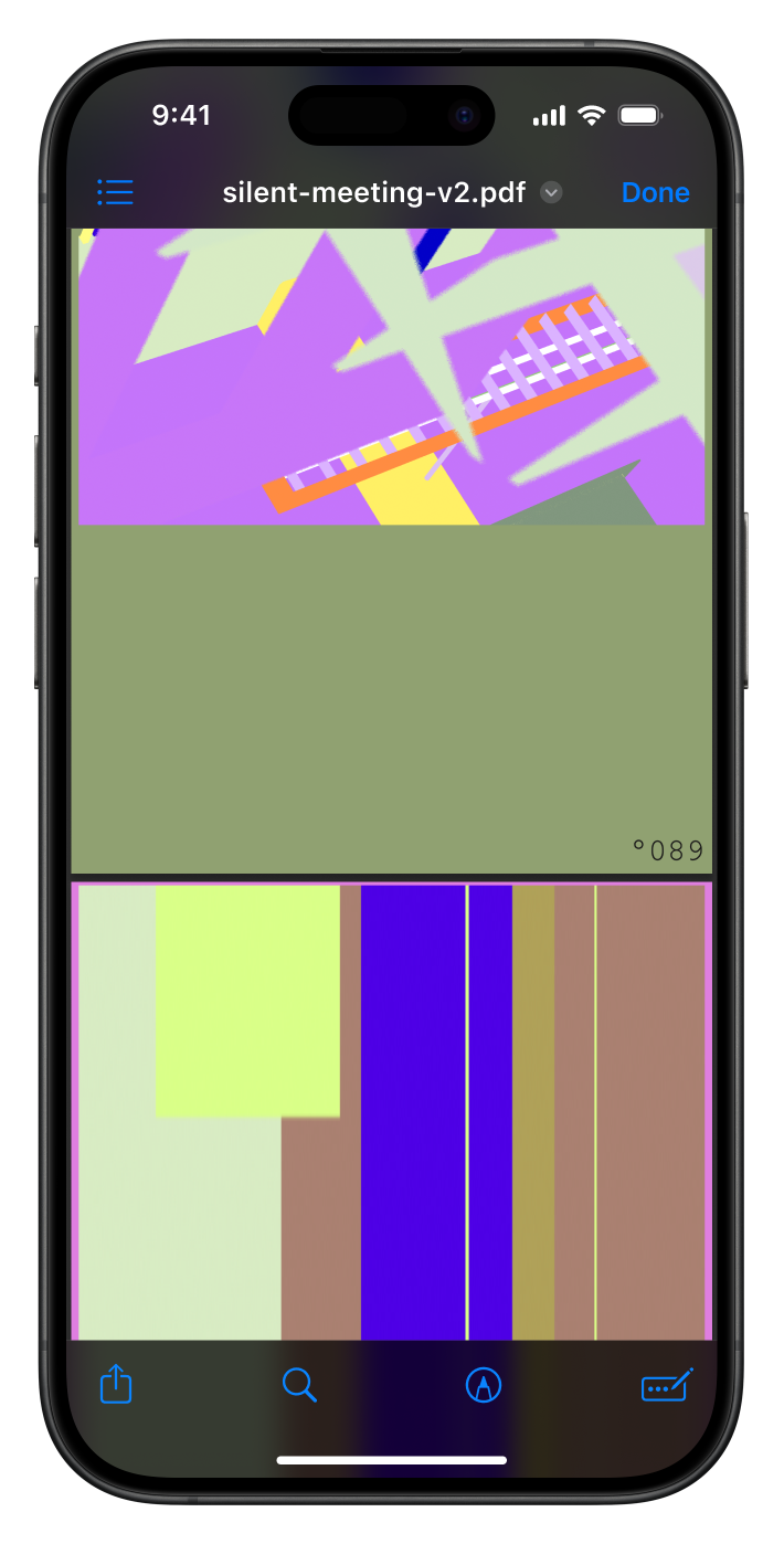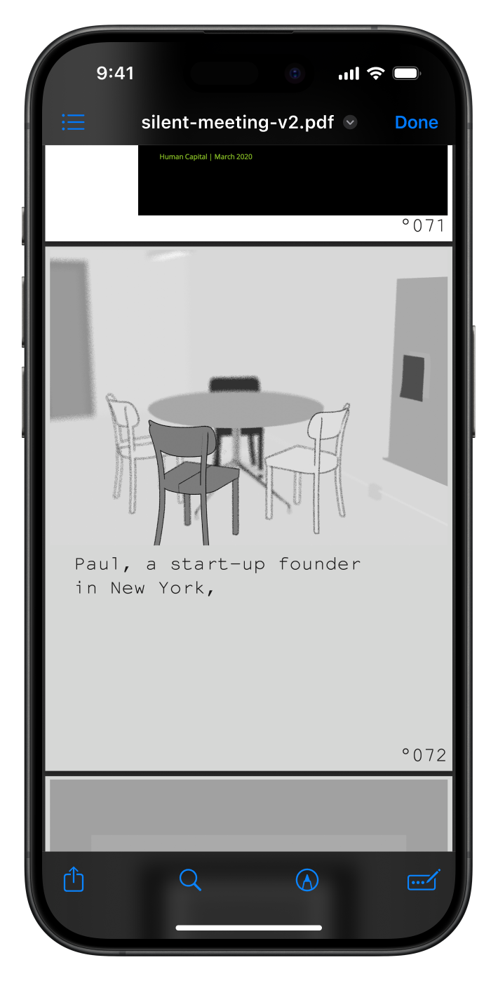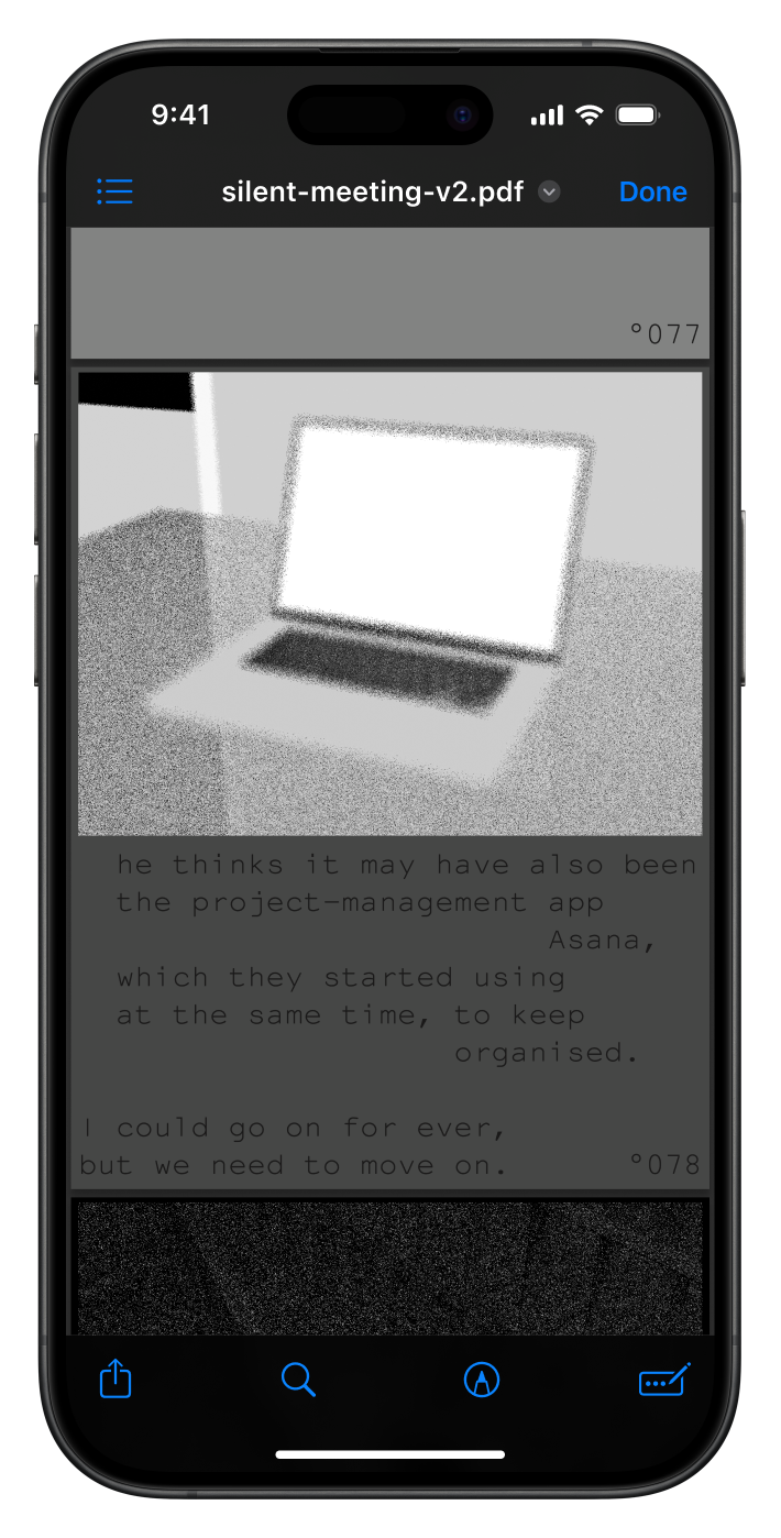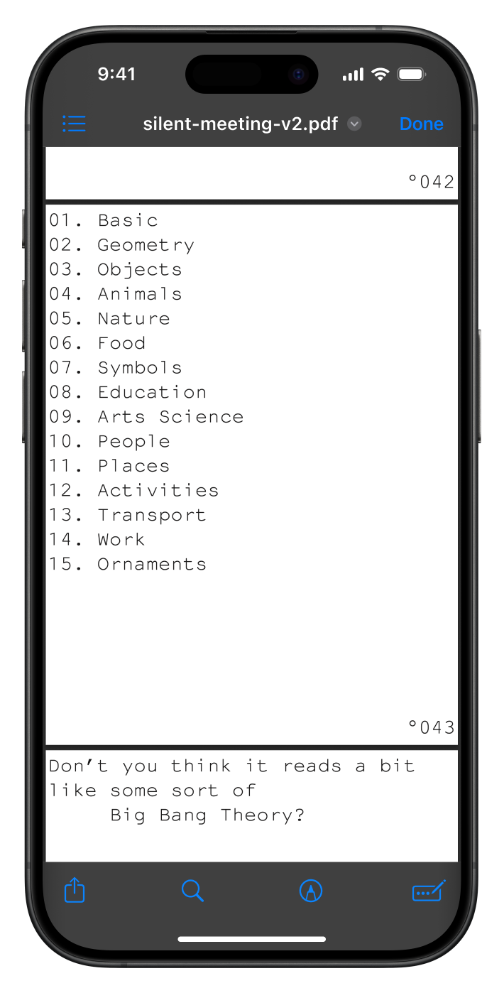 For the second silent meeting participants were was urged to skim a 100 page pdf while a ketlle reaches a 100 degrees. I also used the PDF as a chance to show some of thematic overlap in-between Temporary and Unnamed and Hot Desk. Download the PDF here.