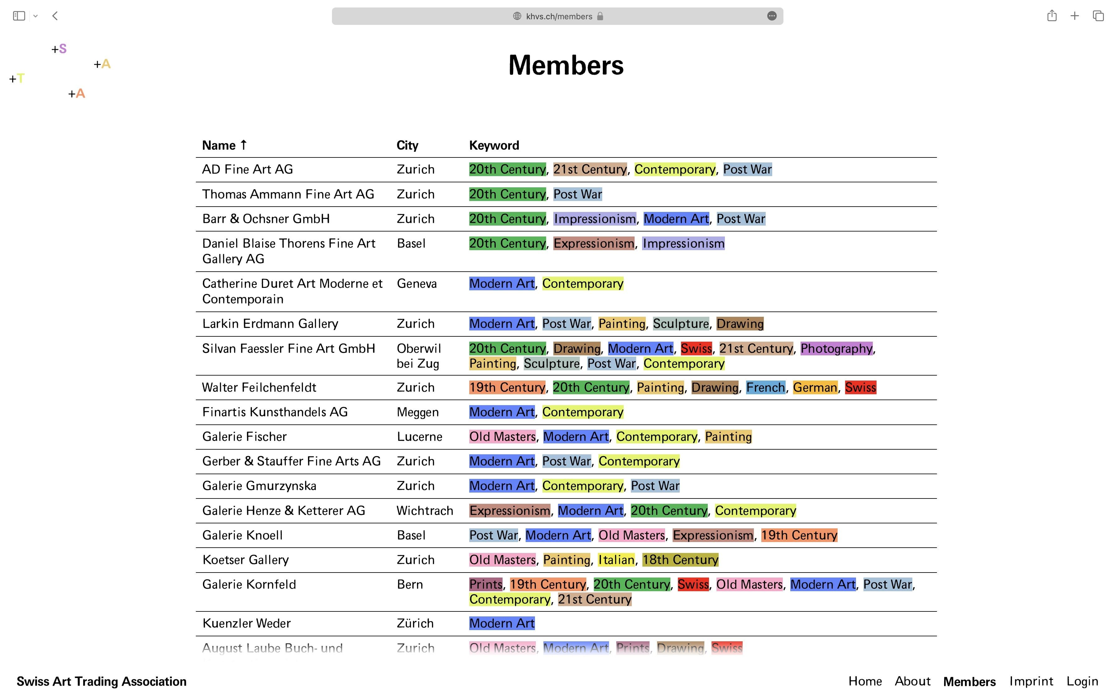 Hannah Tjaden and I designed the identity and website for the Swiss Art Trading Association. As an a collective body of living and practicing art dealers, the association facilitates the movement of art in Switzerland.