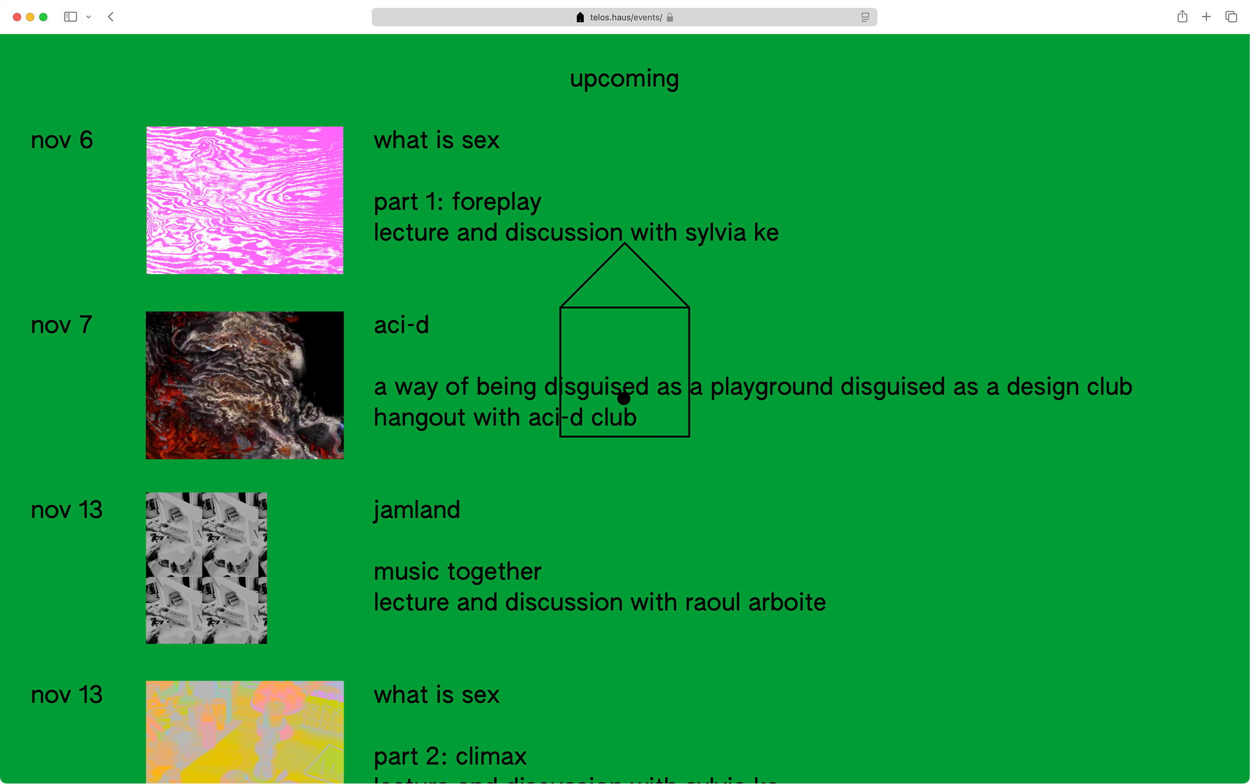 telos.haus is a community and event space in Brooklyn, NY. Created for what began as a three-month pop-up, the identity system is kept light-weight and flexible, prioritizing easy maintenance by anyone with access to a text editor—staying out of the way while remaining present.