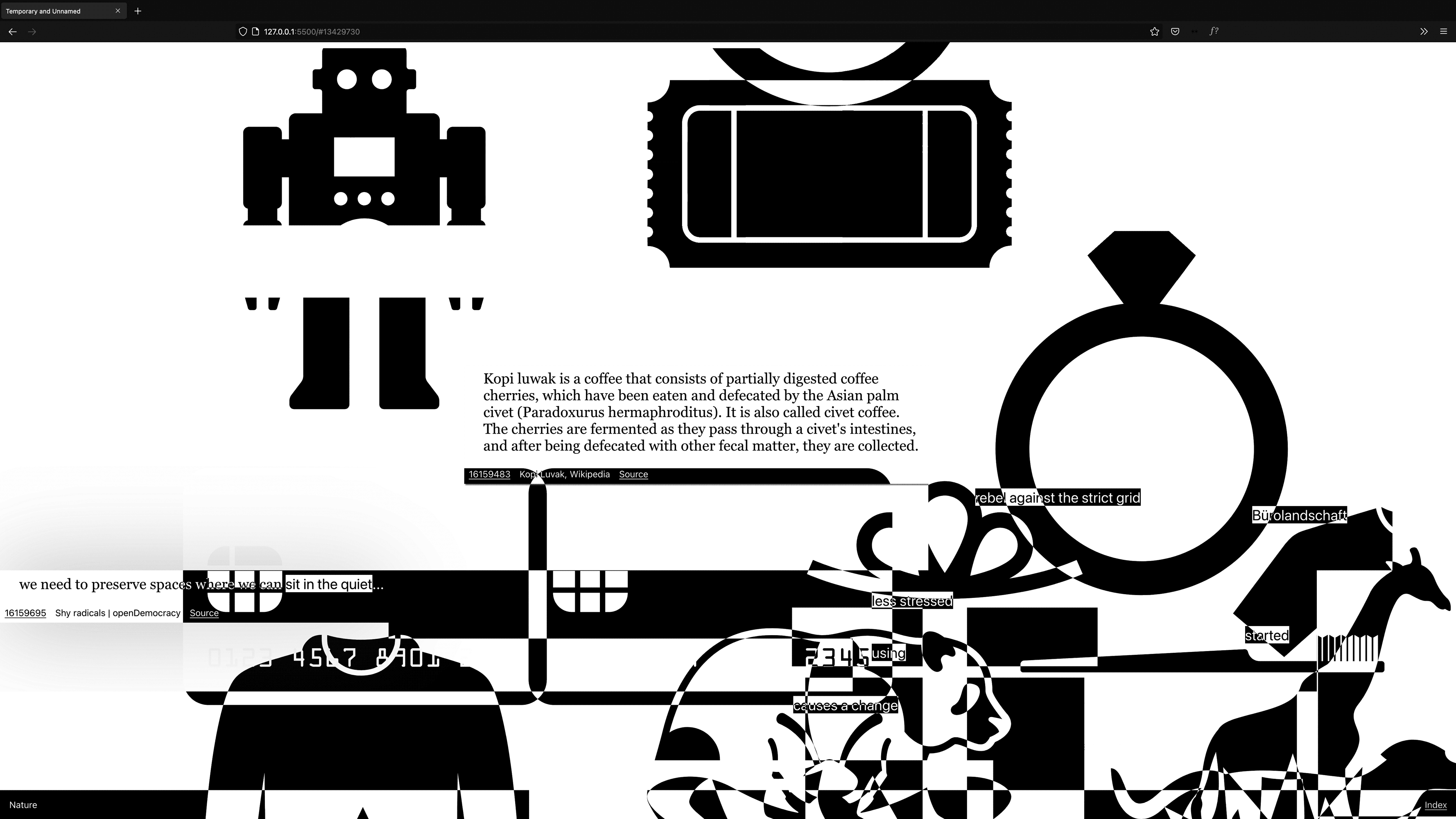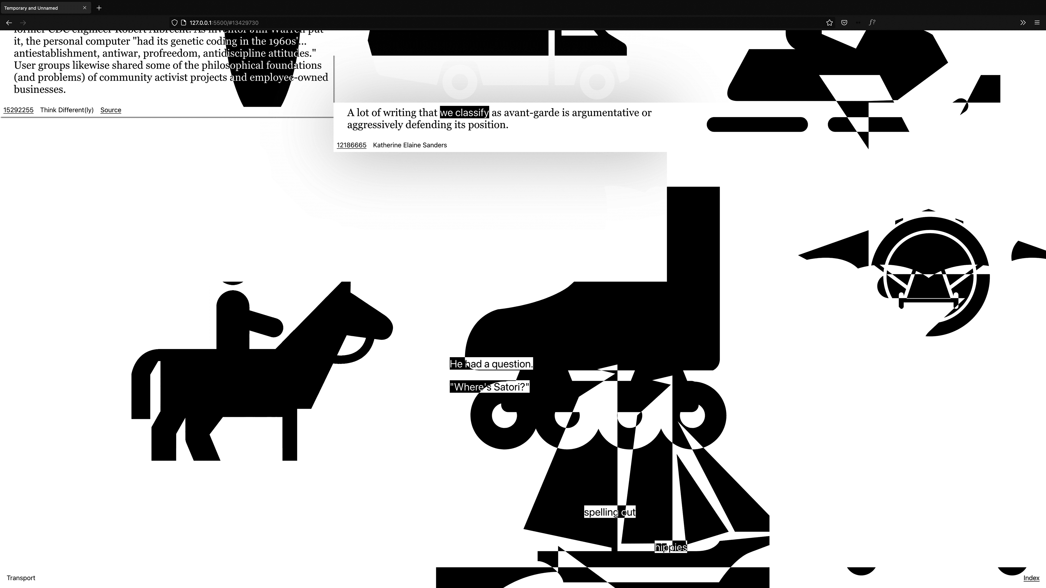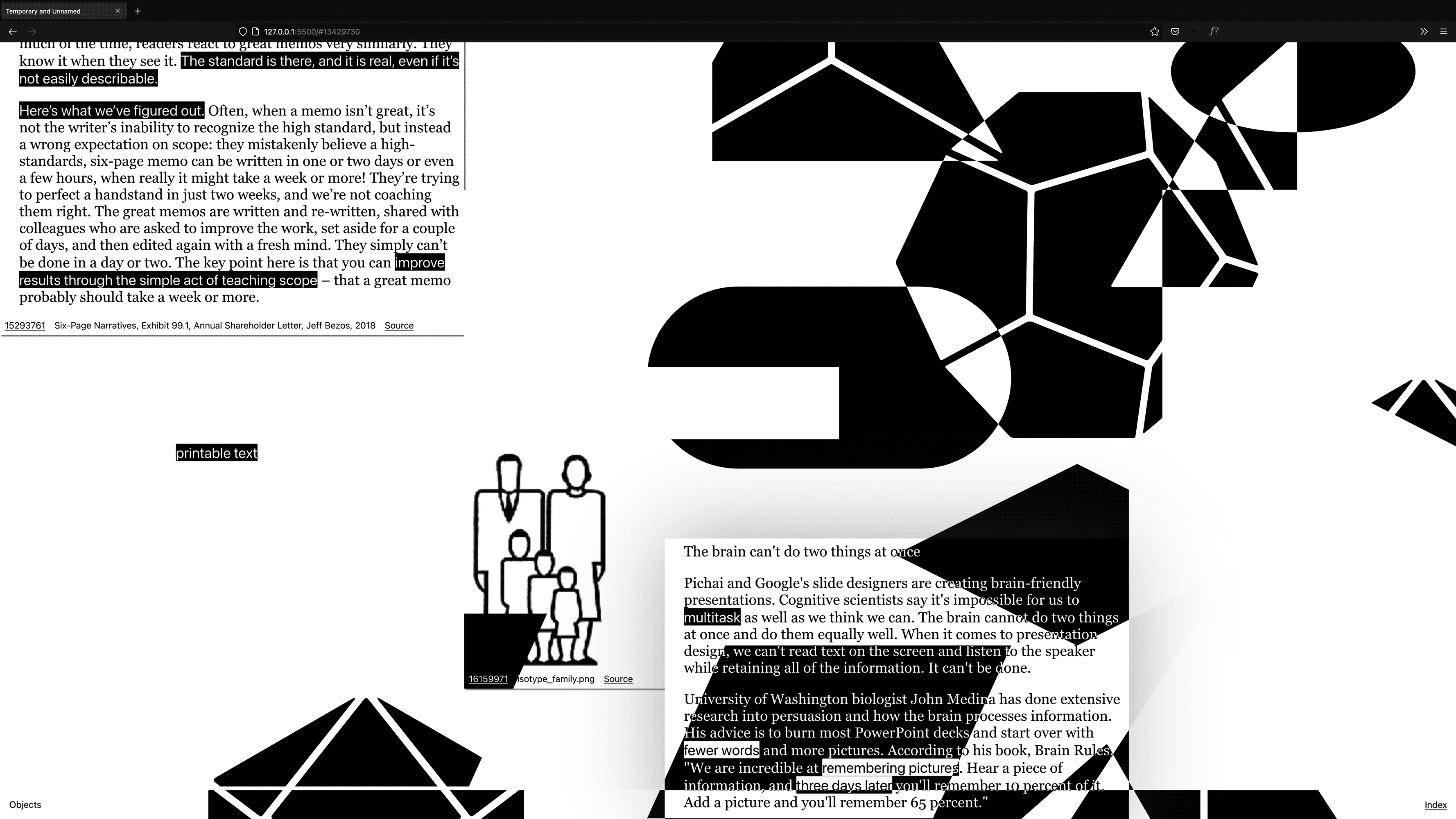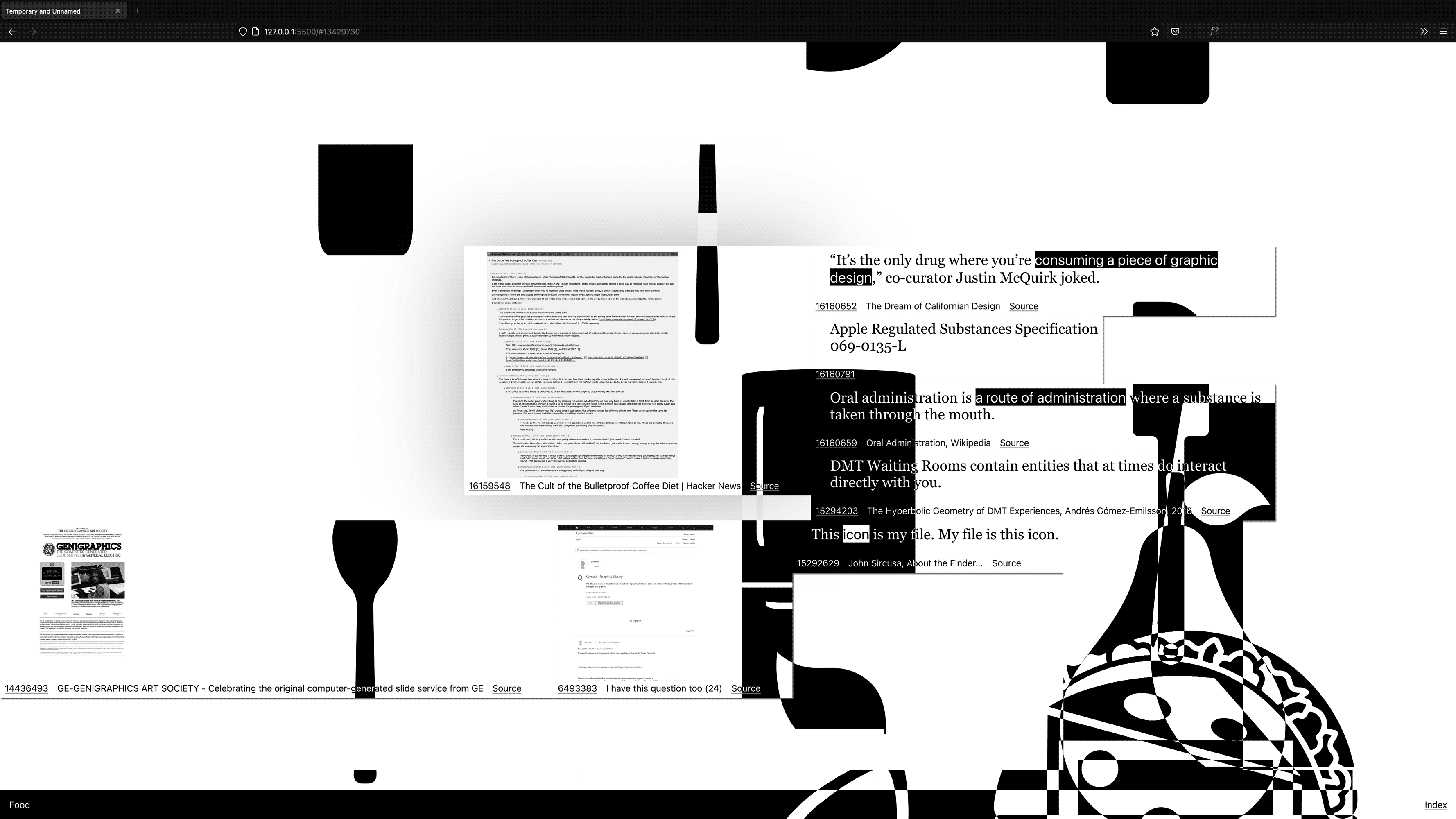 Nothing less but the entire interwingled history of (presentation) software, personal computing it's (psychedelic) corporate<>counter-culture filtered through the sixteen categories of the Apple Shape Library using the Are.na API.